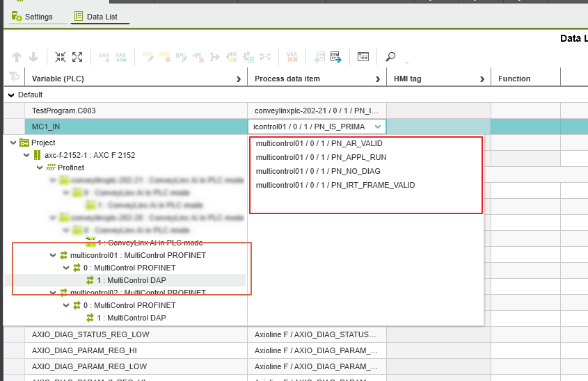 I dont seem to be able to select a tag to assign to a device for information on a profinet device beyond slot 0