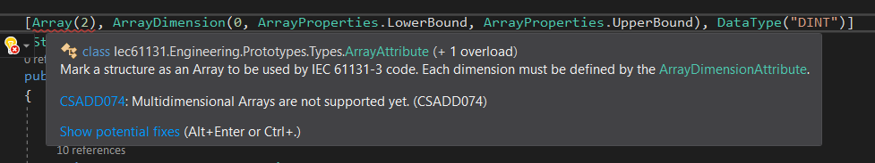 Actually I’m not sure that multi-dimensional arrays will work. It is possible to declare multi-dimensional arrays in PLCnext Engineer, but I suspect that the type definitions for multi-dimensional arrays generated by the C# project are not recognised by PLCnext Engineer. I will check this.