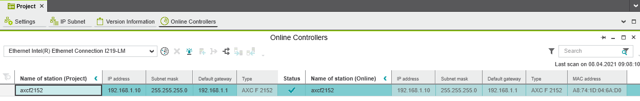Hello, I have a testrack and I want to get online to my CPU. After scanning the Network, PLCnext finds the station and the Status is OK. I can add the station to my project, but then I’m not able to connect. I always get the message “connection failed, no response from the controller:” Can someone help me?