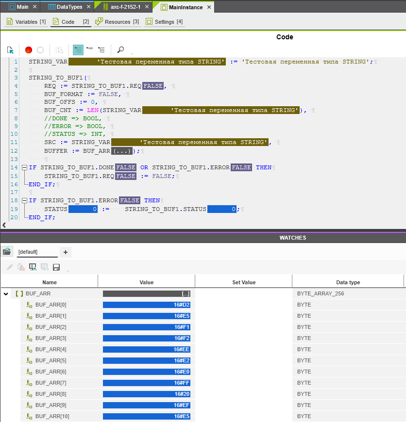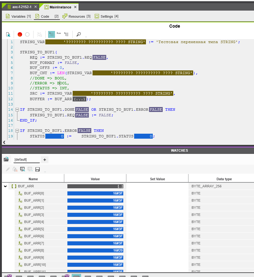 PLC value of variable became unreadable ‘???’ and could not be processed in case of Cyrillic symbols.