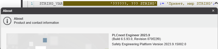 Hi Oleksandr,</p>I’m not a member of the support team but I am a ‘some one’ and I’m curious. I couldn’t even use cyrillic characters as STRING in 2023.9. Am I missing something? PLC is an AXC F 2152 with FW 2023.6 </p>[https://forum.plcnext-community.net/uploads/SBG9J839GY0V/image.png</a></p>