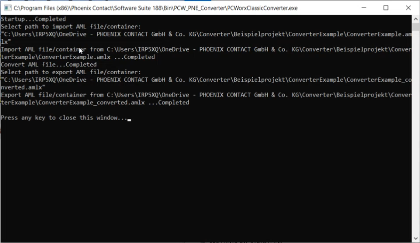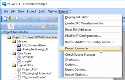 OK, I have received some more information and now I understand your answer (a bit more). One must export the .amlx file from PC Worx and then use that .amlx file as input for the 'Project converter'. My problem is obvious: I cannot export the .amlx file in the first place!
