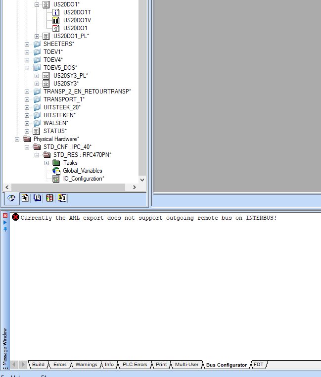 Apparently my old PC Worx project **does** have Interbus remote bus nodes, so the initial export fails. Is there no known 'work-around', for example replace the 'Interbus remote bus' with another type?