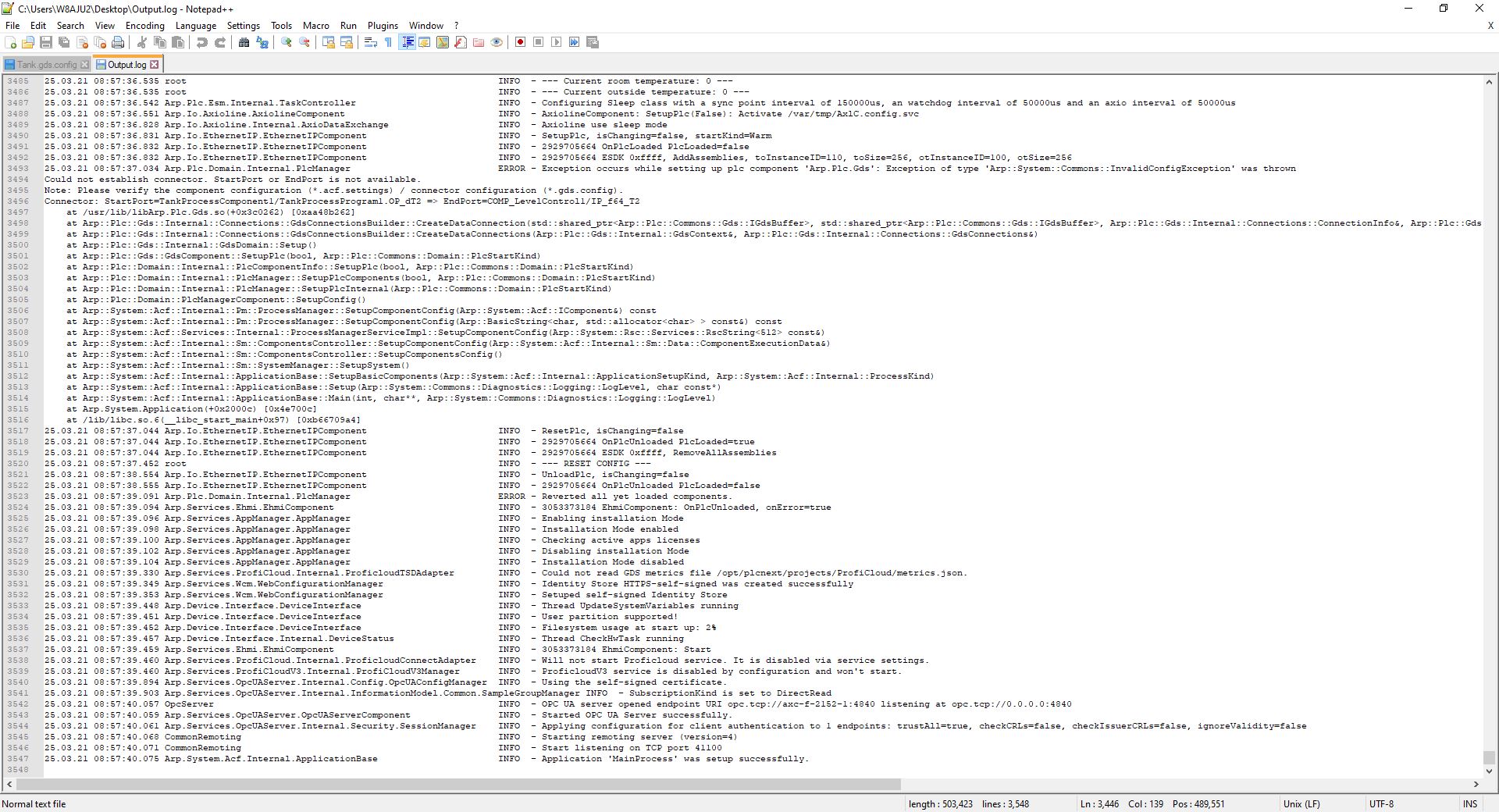 I have attached the relevant error in your Output.log file. It seems that your .gds.config files are being loaded correctly, but at least one GDS port in one of these files does not exist. Please make sure that the two GDS ports mentioned in the error exist. ~ Martin.