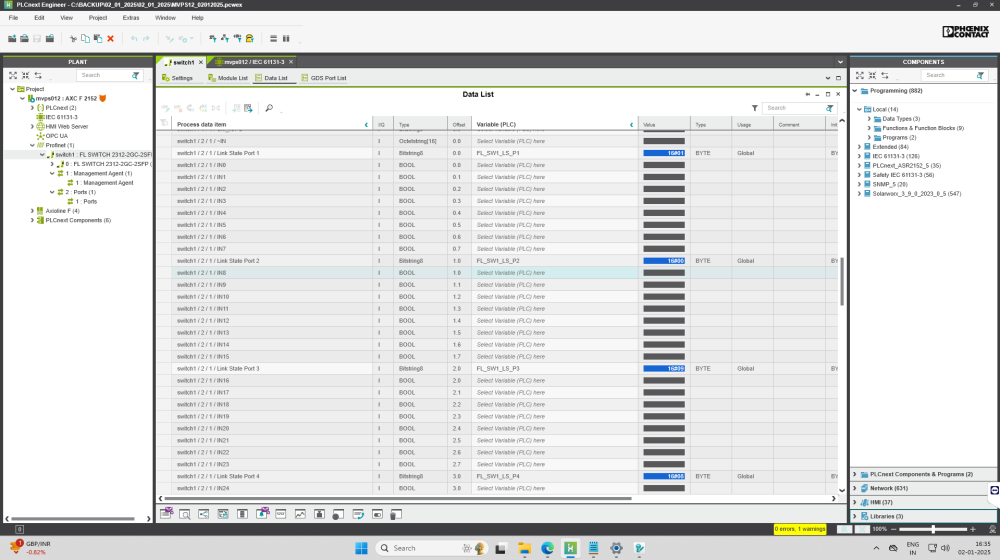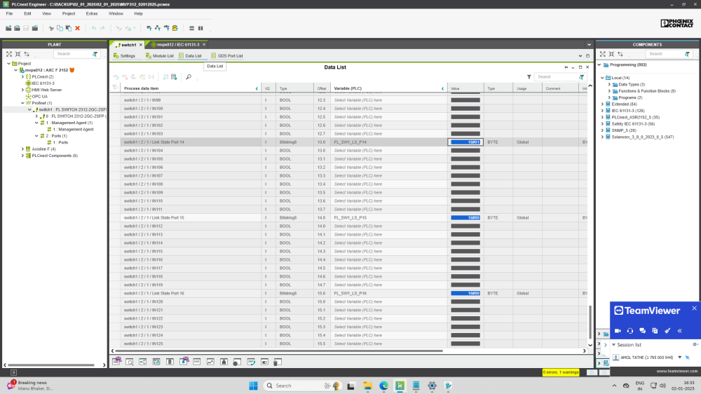 So for these i communicated the switch over profinet sucessfully with AXC F 2152 controller , after that i created variables and mapped them to Link port status of FL Switch and observed them and seems that there was some values like 0,1,8,9 etc .