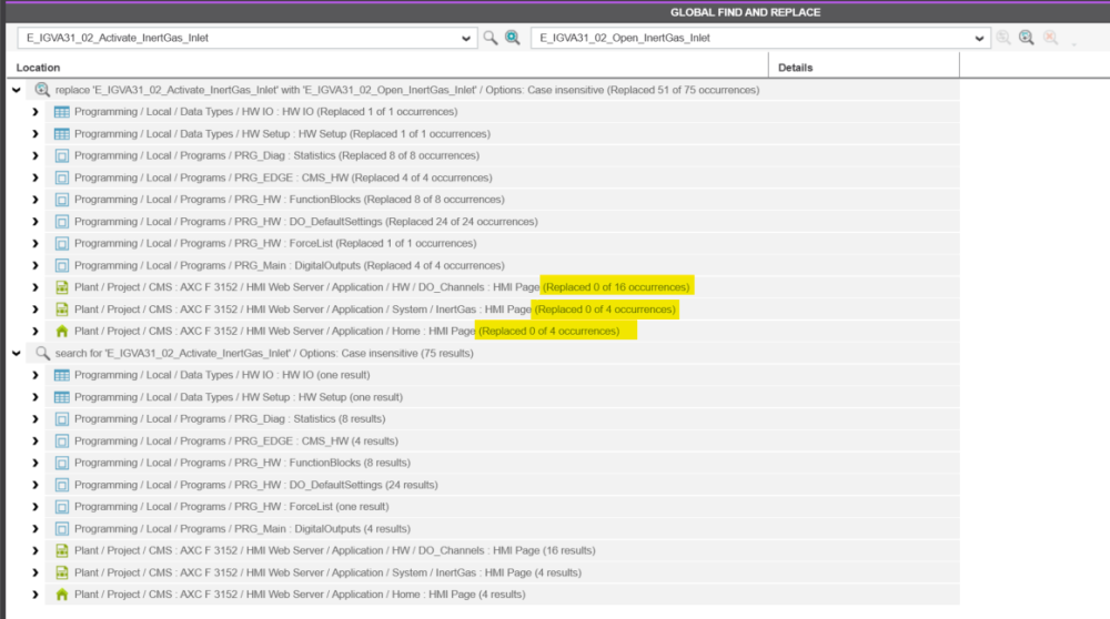 I really like the global search and replace function, but when replacing it does not replace in HMI pages. Is this a bug, or am i doing something wrong ?