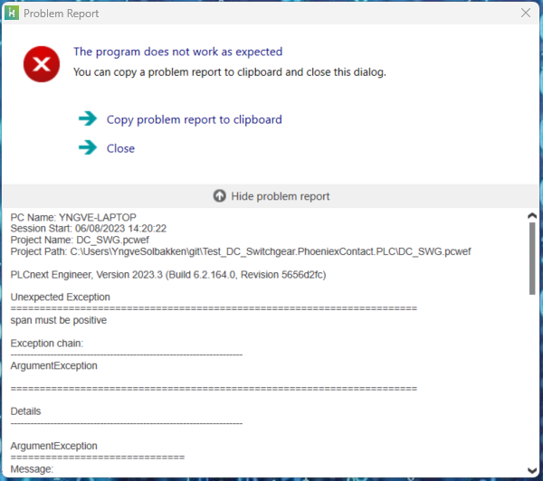 Can you please post a screen-shot of the incorrect behaviour, and describe what you expect to see? Also, I can highly recommend contacting your local Phoenix Contact office, who will have technical people who can offer personal support for your application. ~ Martin.