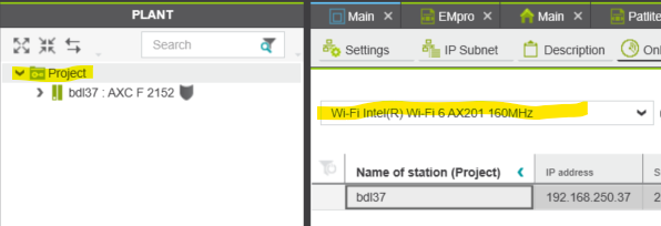 I would like to connect via PLCNext Engineer software (version 2024.0.3) to the EPC 1502 (Firmware: 2024.0.3) device via WLAN module.