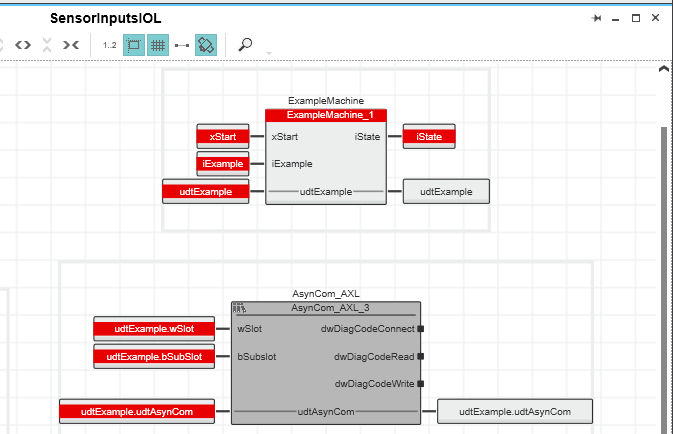 Or is this AsynCom function block getting this data from the ExampleMachine function block, and is the IOL_COM function block getting it 's data from the AsynCom? Is ExampleMachine optional, is AsynCom optional?