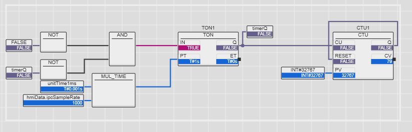 I use a counter to count the output of the timer. The timer is in 1s task and the PT for timer is 1000ms. I got about 17 count in one minute. When the timer is put into 500ms task, I got about 28 count in one minute. While the timer is in a 100ms task, I can get 49 timer switching on output. See the attached picture. Should it be 60 switching on for a PT=1s timer in 60 secs? The process values are from the Modbus Poll and the poll rate is between 500ms to 1s (Poll rate varies depending on if a write command is sent). With your reminding, I could use a “add” block to count the number of 100ms cycle. The only thing I have to do is to divide the sample rate (sample rate is a HMI parameter) by 100ms, then compare the result to the number of cycle to do sampling. Am I doing right here? However, it raises the concern that the timer does not work accurate in PLC program. Thanks Jason