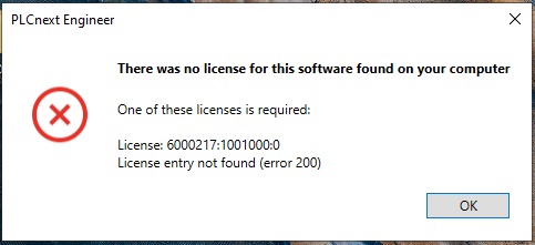 Facing this issue while opening PLC Next Engineer 2025.0 software. image attached, License Entry not found.