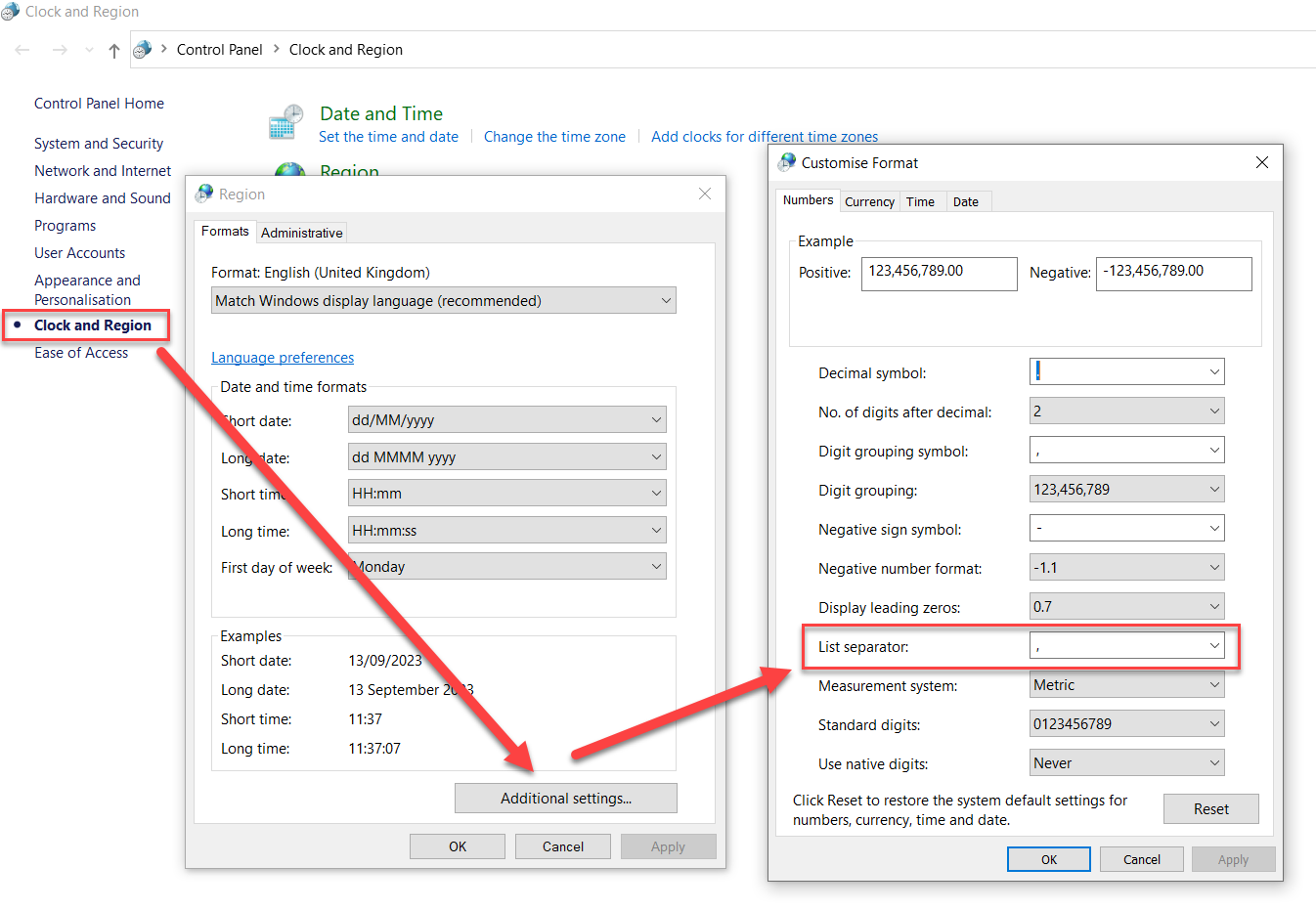 (i.e. change the list separator to something other than a comma).