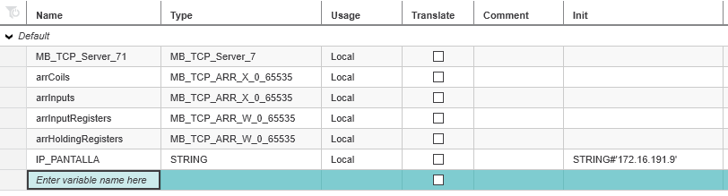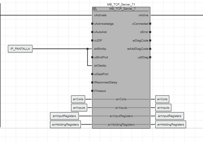 1- If I want to share 1 input variable from PLC 1 to the HMI and PLC 2, I think I may use the FB MB_TCP_Server in PLC 1, in strBindIP create a variable with the IP of the HMI [IP_PANTALLA as a initiallited string] (and another FB with the IP of the other PLC 2), but I don’t know what else I have to do. I’ve read the manual but I have no clue how to continue.