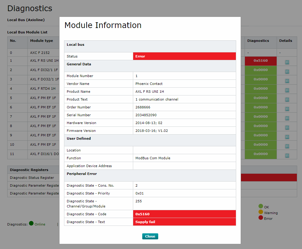 For some reason this morning the communication stopped working with RS UNI master wDiagCode reporting 16#8100.