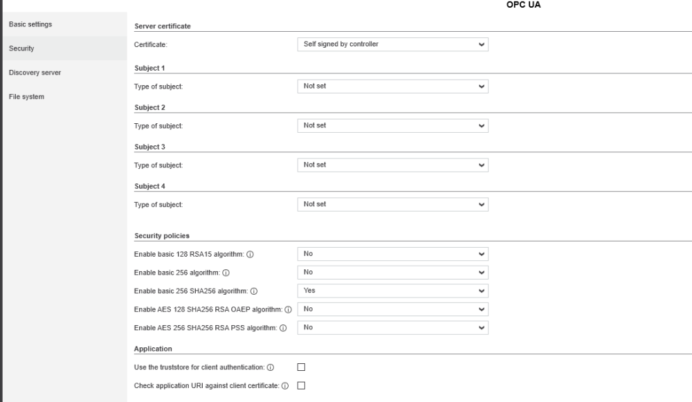 For the use with UAExpert, have a look at my settings: