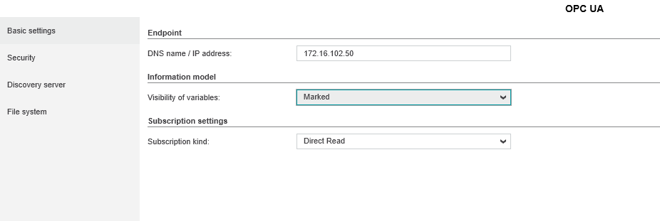 In most applications, it is not necessary to make any changes to the Discovery Server or the File system settings.