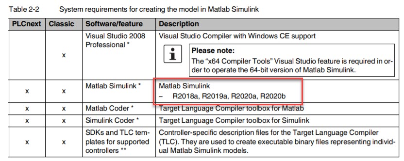 hi,I have a question about simulink ; install Matlab 2017a and PC WORX Target for Simulink (v1.4 / v1.5 / v1.6),and install PLCnCLI_SDK_2021.0_LTS_Windows_AXC_F_1152 ; The result is MENU—not found the PlcNext Tool or click SDK manage ,message not „source“. how to solve this question. thanks hi,您好,我打算使用matlab simulink仿真,按照操作sop安装软件时,发现和提供的不一致,没有出现该选择项,且安装中文版后也是如此, PC WORX Target for Simulink(V1.6)安装时老弹出不满足要求,需要安装matlab 2017a,我已安装,是不是设置有问题? PC WORX Target for Simulink(V1.5)安装后能显示PLCnext工具,但有新的问题,点击SDK manage后弹出不存在资源,所以该怎么解决。