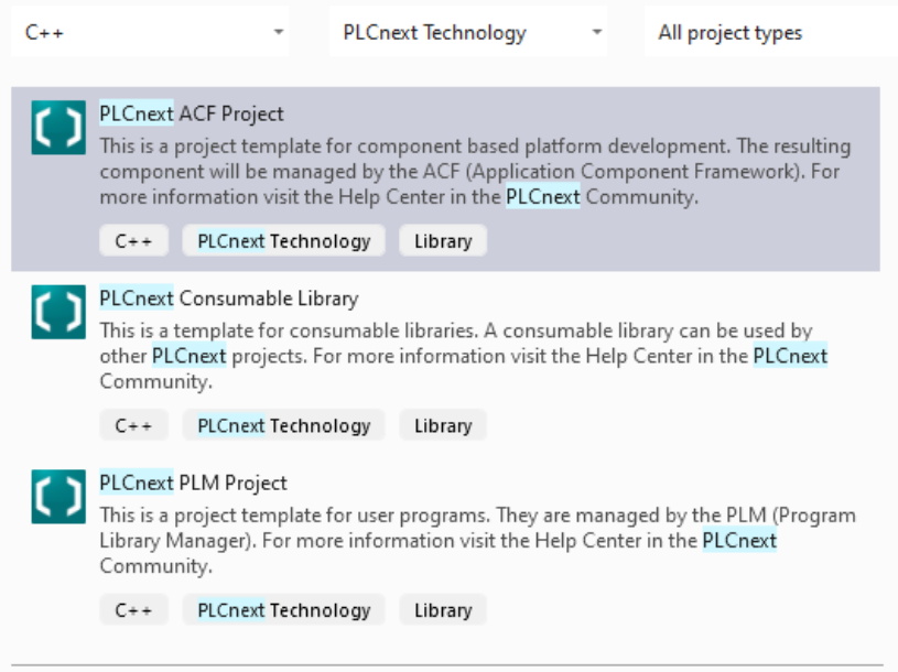 There is some information about the difference between ACF projects and PLM projects in the PLCnext Info Center, on this page: