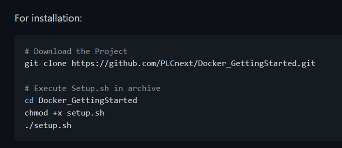 40. Tried to install Docker using Phoenix Contact docker Github directions and Phoenix Contact file. The install would not work and had many internal broken links.