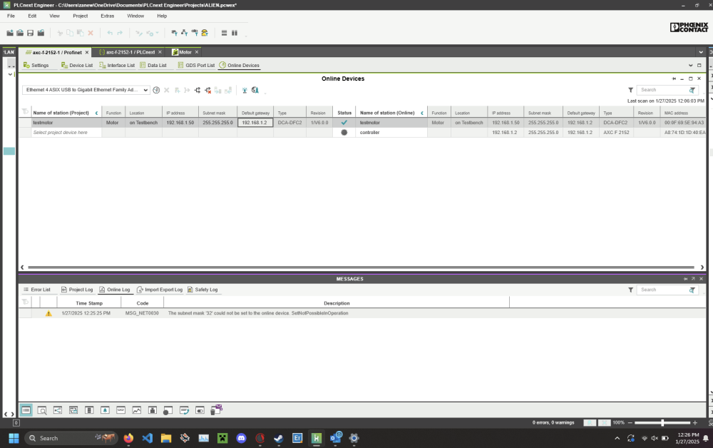 image.pngFrom my workstation I can ping both the motor (192.168.1.50) and the PLC (192.168.1.10).