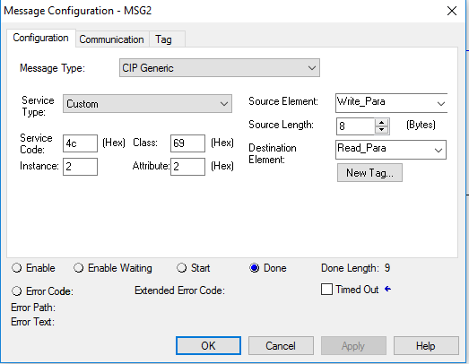 Hello, I am using a Rockwell CompactLogix and I am trying to write IO configuration data using extended access to Axioline F and Smart Elements IO using the ParaTable of the PDI Object. I have a Read and Write explicit message set up in my controller. The write message has the following settings