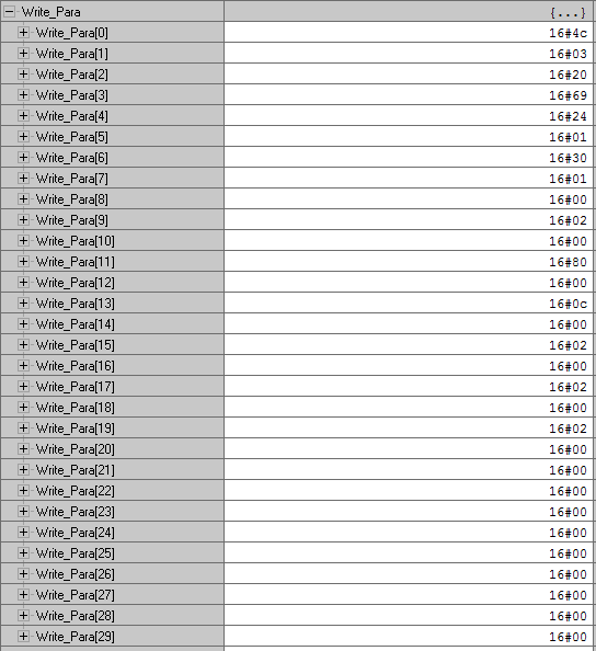 And then I have configured the Write_Para array as follows based on page 47 of the user manual