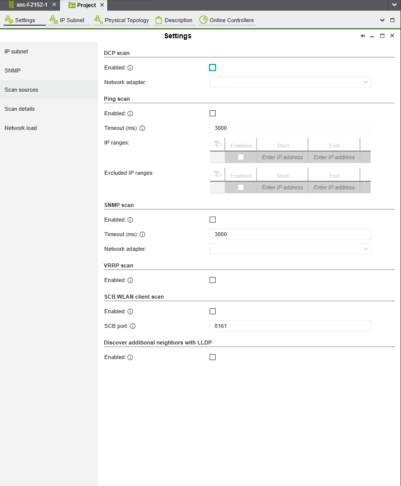 The settings “Scan sources” (screenshot) apply to the “Physical Topology” edtior.